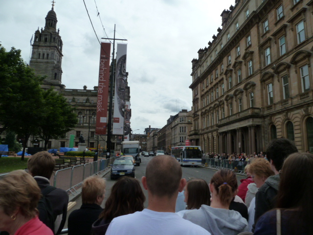 Glasgow is an architectural delight! There are so many Victorian style buildings, I was snapping away with my camera everywhere. We parked at the Buchanan Square shopping mall and found some Starbucks to keep us going before going onto the pedestrian streets; drifting towards George Square. George Square is a large paved area in the middle of the city with numerous statues. When we arrived I was surprised to see metal fencing around parts of the square and crowds of people.